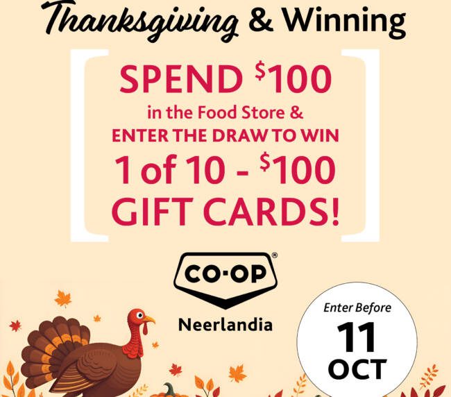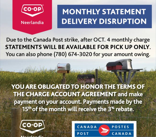 Cash, debit, Visa, Mastercard, or charge it to your Neerlandia Co-op charge account