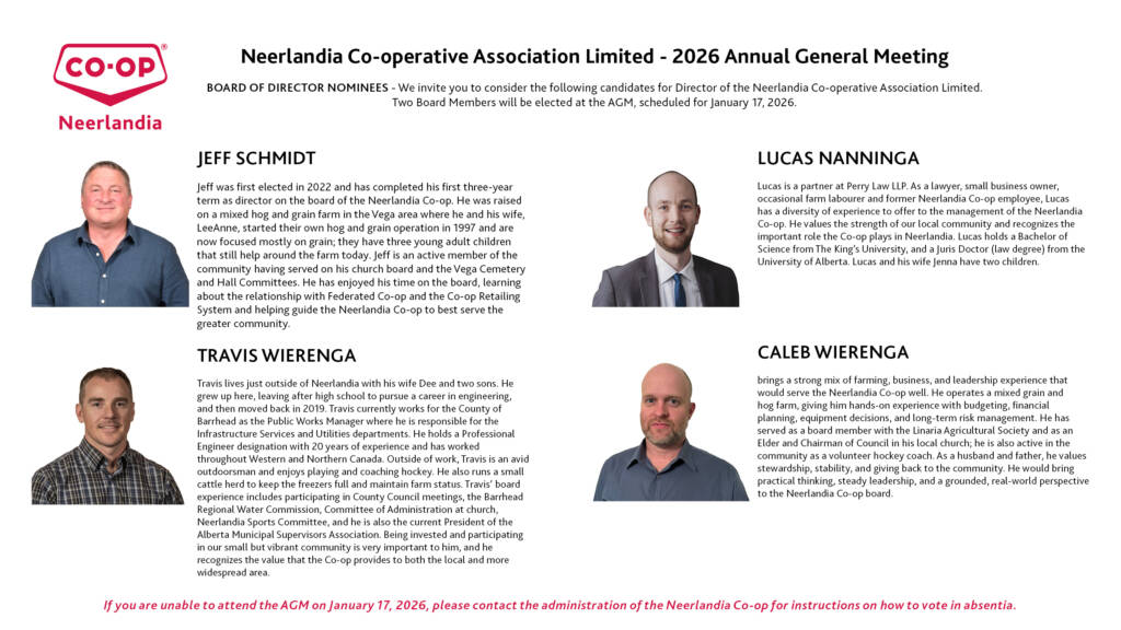 We have great things coming. The Neerlandia Co-op is future-focused and has a growth mindset balanced with responsible fiscal practices.