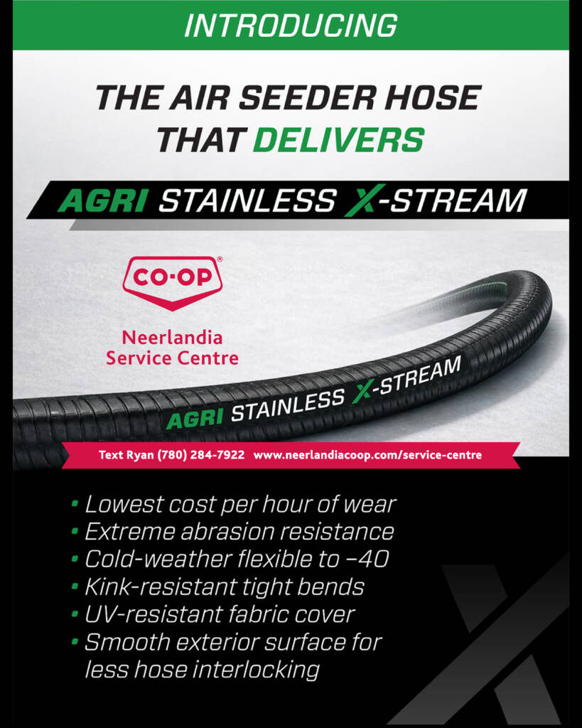 Connect with Ryan at Neerlandia Co-op Service Centre to learn more about this new Air Seeder Hose technology from Agri Stainless Inc. and to order yours today! (780) 284-7922 / [email protected]