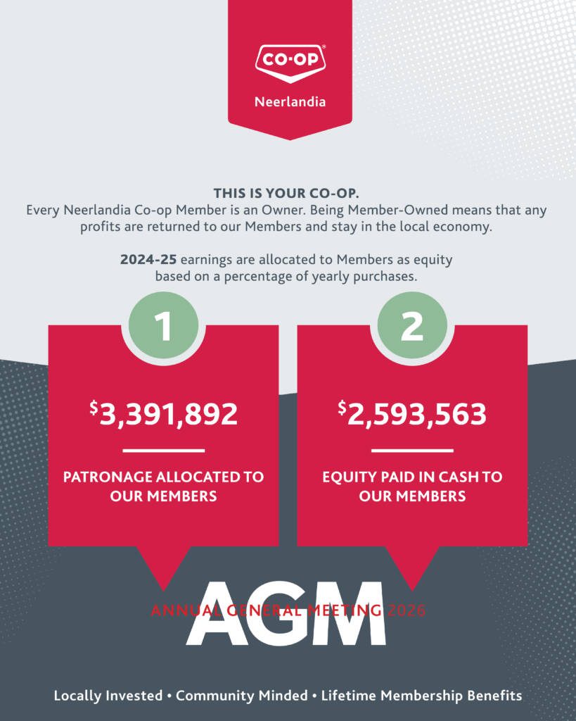 Membership was presented with the 2024-25 Financial Audit for our cooperative plus information from our Federated Co-op Ltd. (FCL) representative, voted on Bylaw Amendments, elected new and returning Directors to our Board, and wrapped up with a Q&A session. Congratulations to Jeff Schmidt and Lucas Nanninga on their elections, and thank you to our Board members for their ongoing service and oversight.