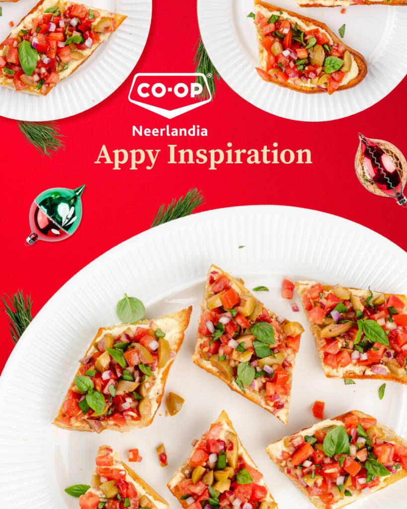 Everyone loves appetizers and Neerlandia Co-op has a wide variety of SNACKING SOLUTIONS in the deli, freezers, snack aisles and right here with a Bruschetta recipe. Click the image to launch the recipe.