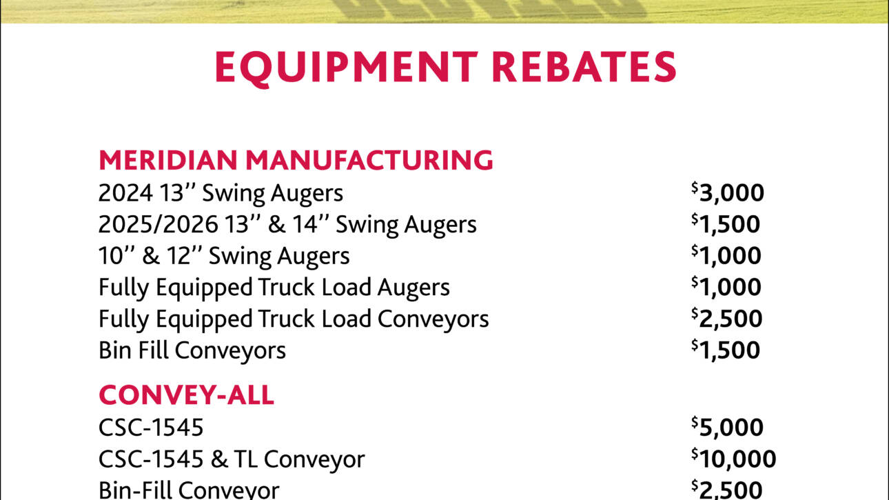 Meridian rebates help your farm invest in reliable, high-performance Bins, Augers & Conveyors to keep your operation running efficiently. Call Neerlandia Co-op today to lock in your rebates and get the…