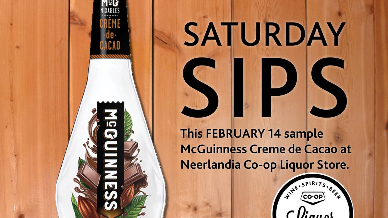 Valentine's Day just got sweeter!Join us THIS SATURDAY, February 14 at Neerlandia Co-op Liquor Store for Saturday Sips.TRY A SAMPLE of McGuinness Crème de Cacao!