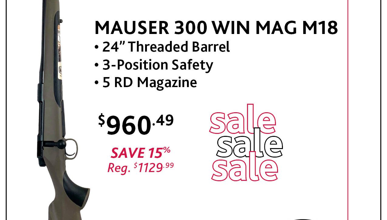 Neerlandia Co-op Sportsman Centre - feature Gun Of The Week special! Check out this MAUSER 300 WIN MAG M18 24" Threaded Barrel 3-Position Safety 5 RD Magazine 15% OFF from…