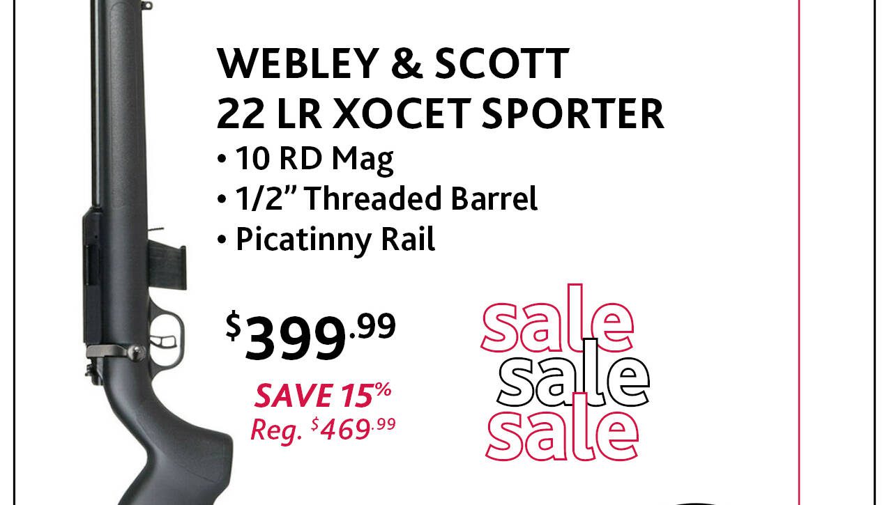 Neerlandia Co-op Sportsman Centre - feature Gun Of The Week special! From DECEMBER 8-13, 2025 check out: WEBLEY & SCOTT 22LR XOCET SPORTER 10 RD Mag 1/2" Threaded Barrel…