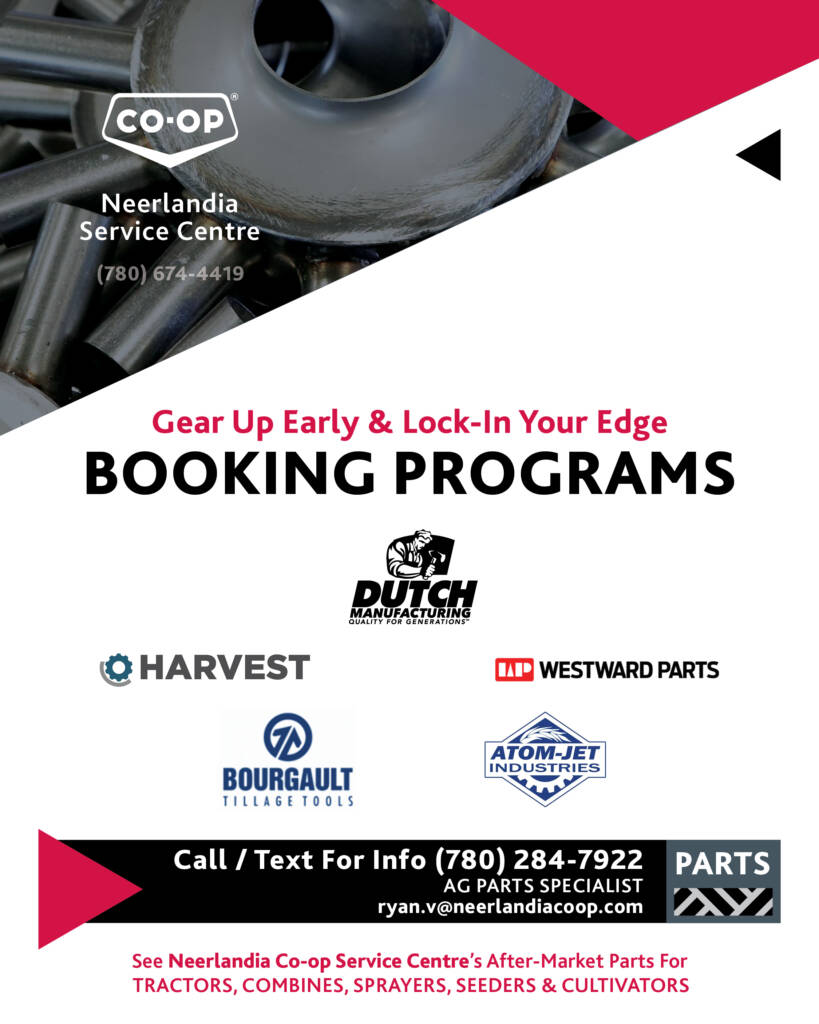 Get ahead this season with Neerlandia Co-op Service Centre’s BOOKING PROGRAMS for farm equipment parts! Call or text Ryan at (780) 284-7922, or email [email protected] to RESERVE YOUR PARTS TODAY!