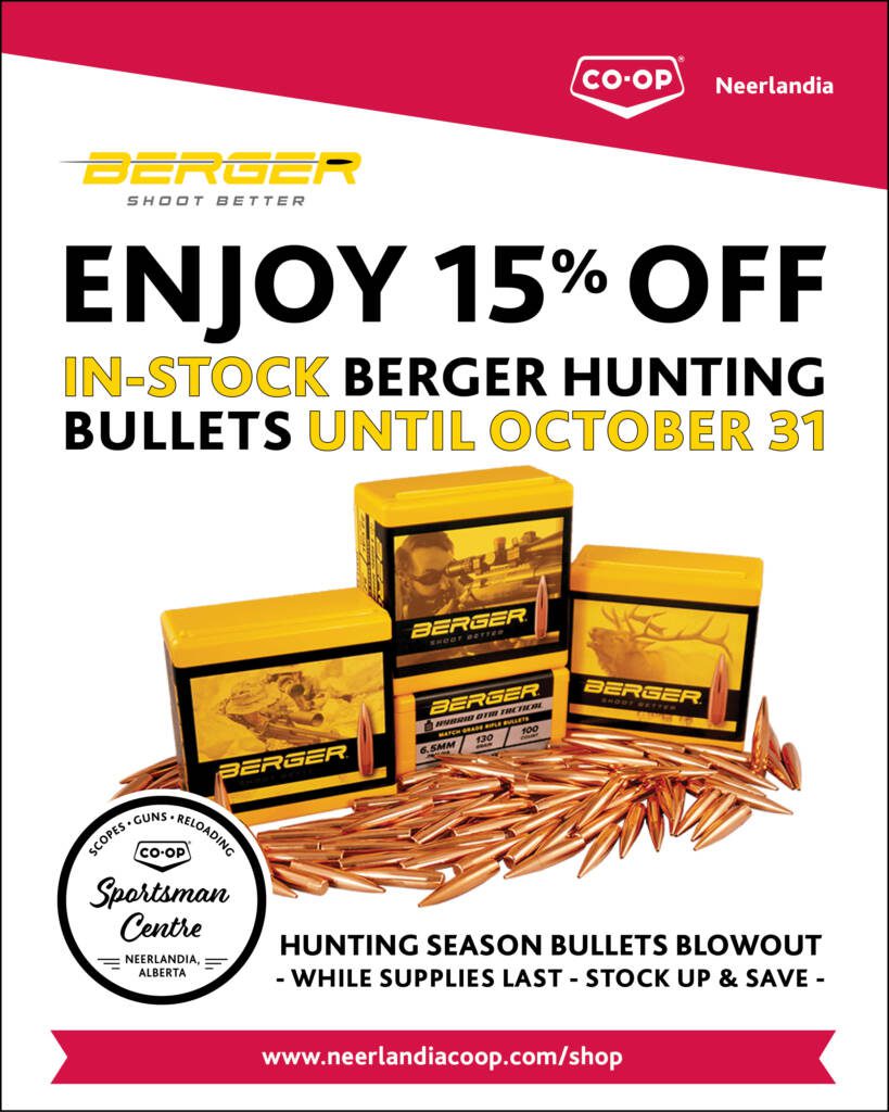 We’re having a Hunting Season Bullets Blowout! Stock Up & Save Now on all In-Stock hunting BERGER BULLETS.Find numerous Scopes on special offer, too!Shipping Available Across Canada. Click the image to launch our SHOP tab to view all SALE ITEMS!